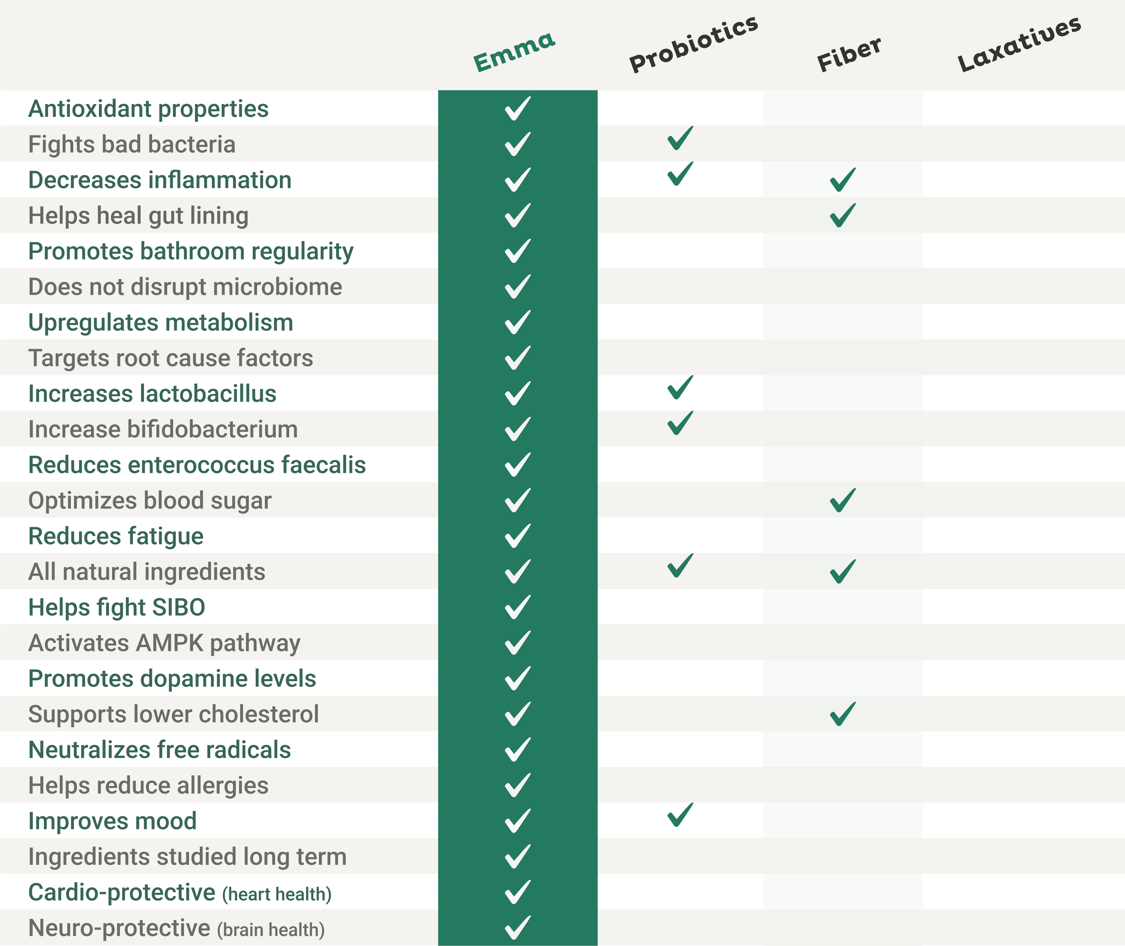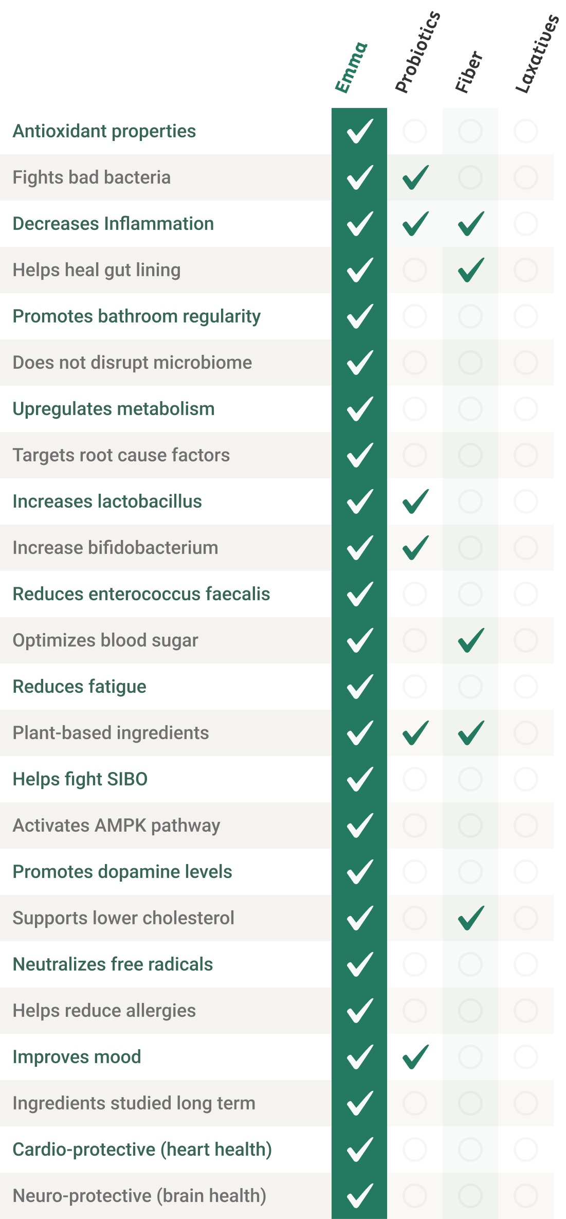 Emma helps balance the production of methane gas. It works in 3 different ways to normalize bathroom habits, usually within a few weeks of taking it to relieve occasional constipation and bring back those perfect poops.
