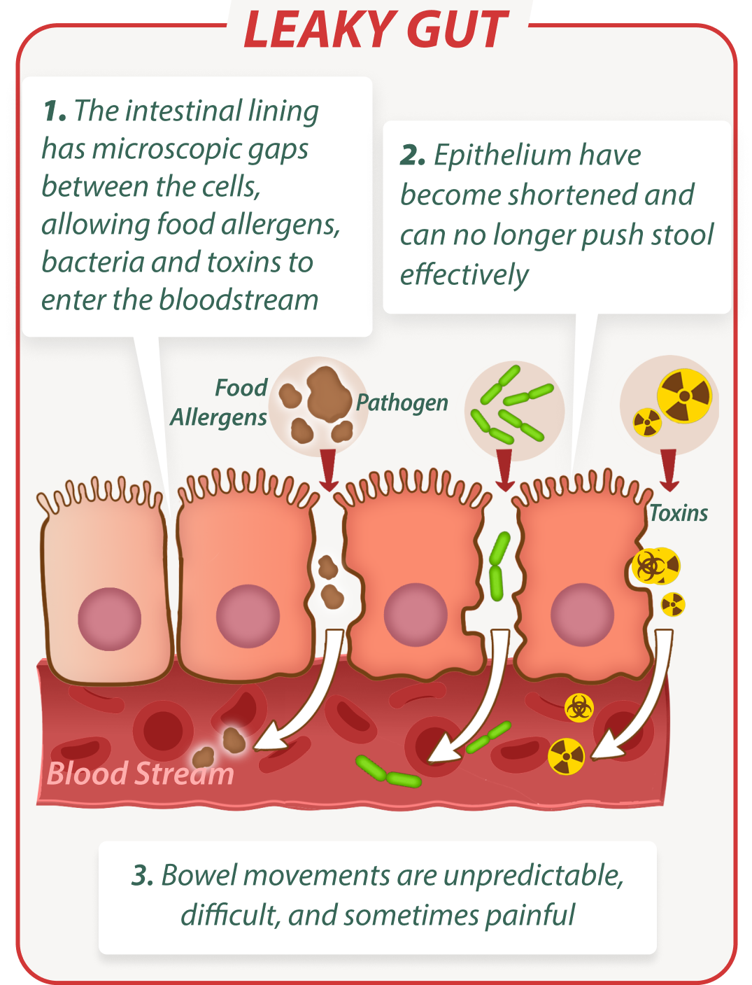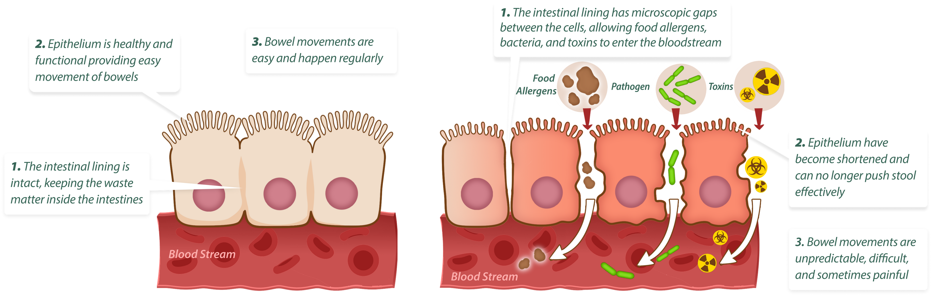 This restores peristalsis waves to prevent waste buildup and keep intestines clean.